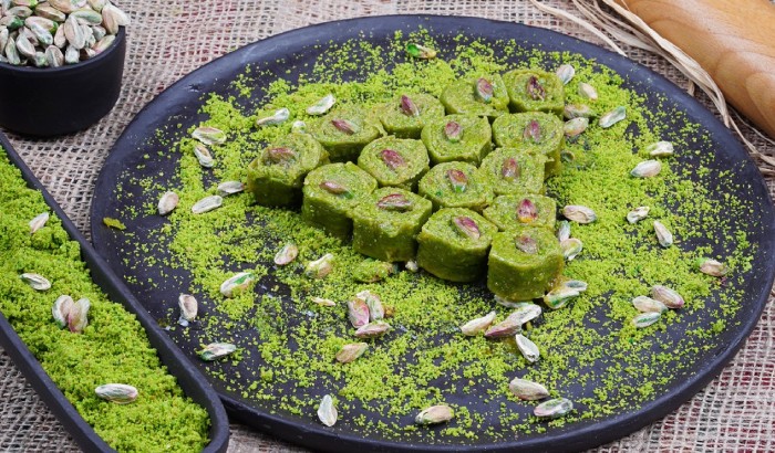 The process of making Birds Eye Baklava involves creating a soft, pliable dough enriched with buttermilk, oil, and eggs. The dough is then divided into small portions, rolled out thinly, and shaped into the characteristic bird’s eye form. Each piece is filled with a generous amount of walnuts, which provide a delightful contrast to the sweet, flaky pastry.